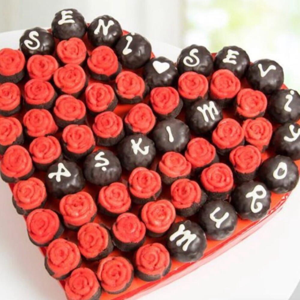 kırmızı gül kek - 35 adet siyah kakolu silimdir kek - 19 adet