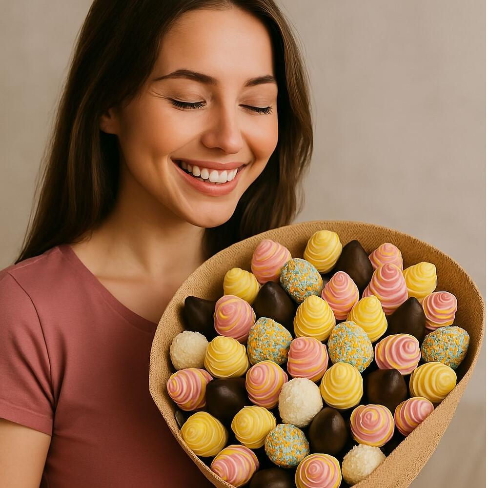 Özel günlerinizde ve en özel anlarınızda sevdiklerinize hediye edebileceğiniz lezzet dolu hediyelik meyve sepeti ürünleri ile en güzel anlarınızı tatlandırın... Ürünümüzde yaklaşık olarak 40-45 arası çikolata kaplı çilek bulunmaktadır. Adetler meyvelerin boyutuna göre değişiklik gösterebilmektedir.