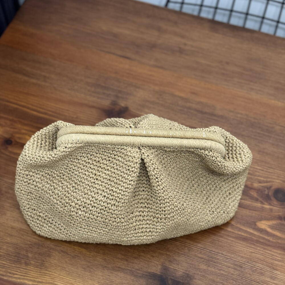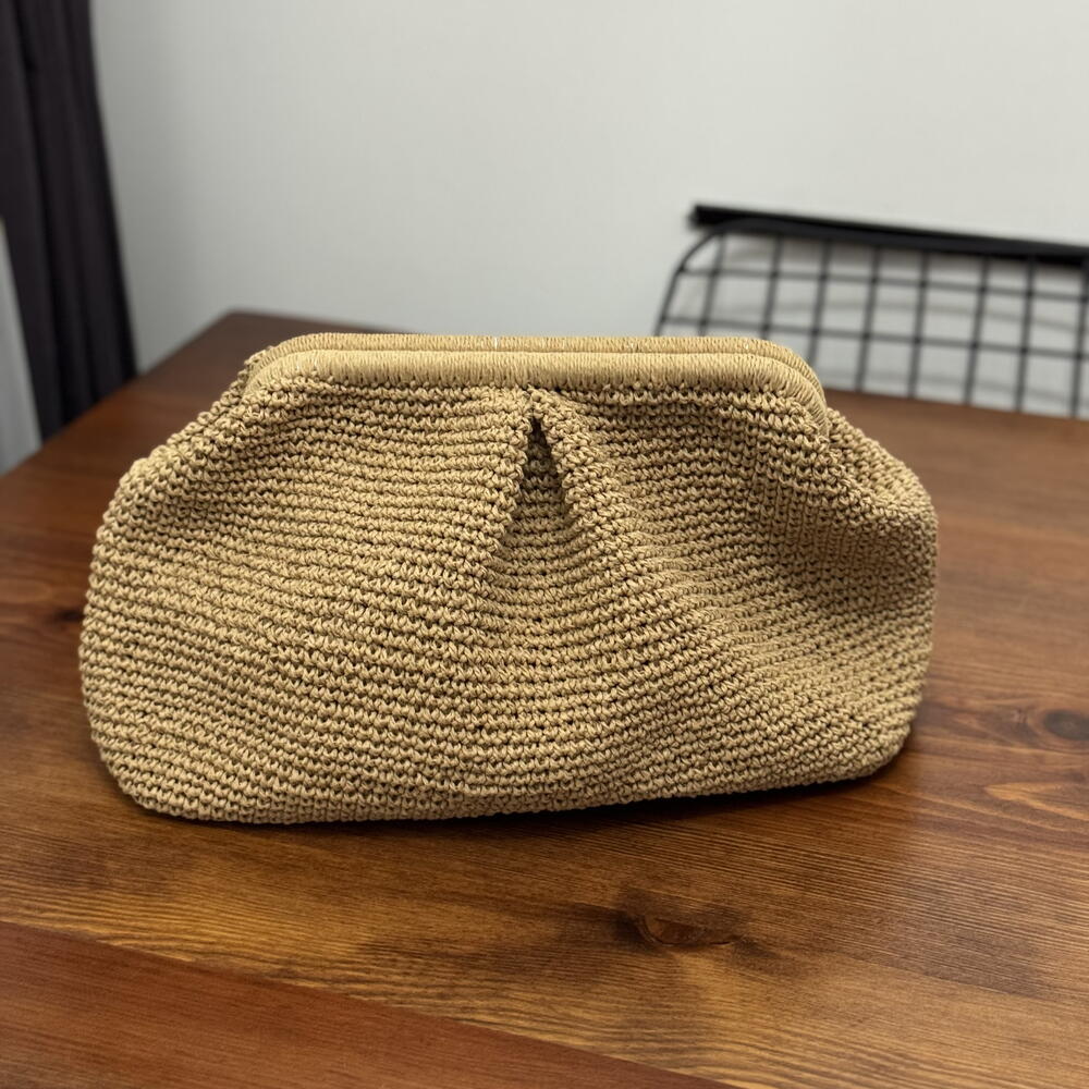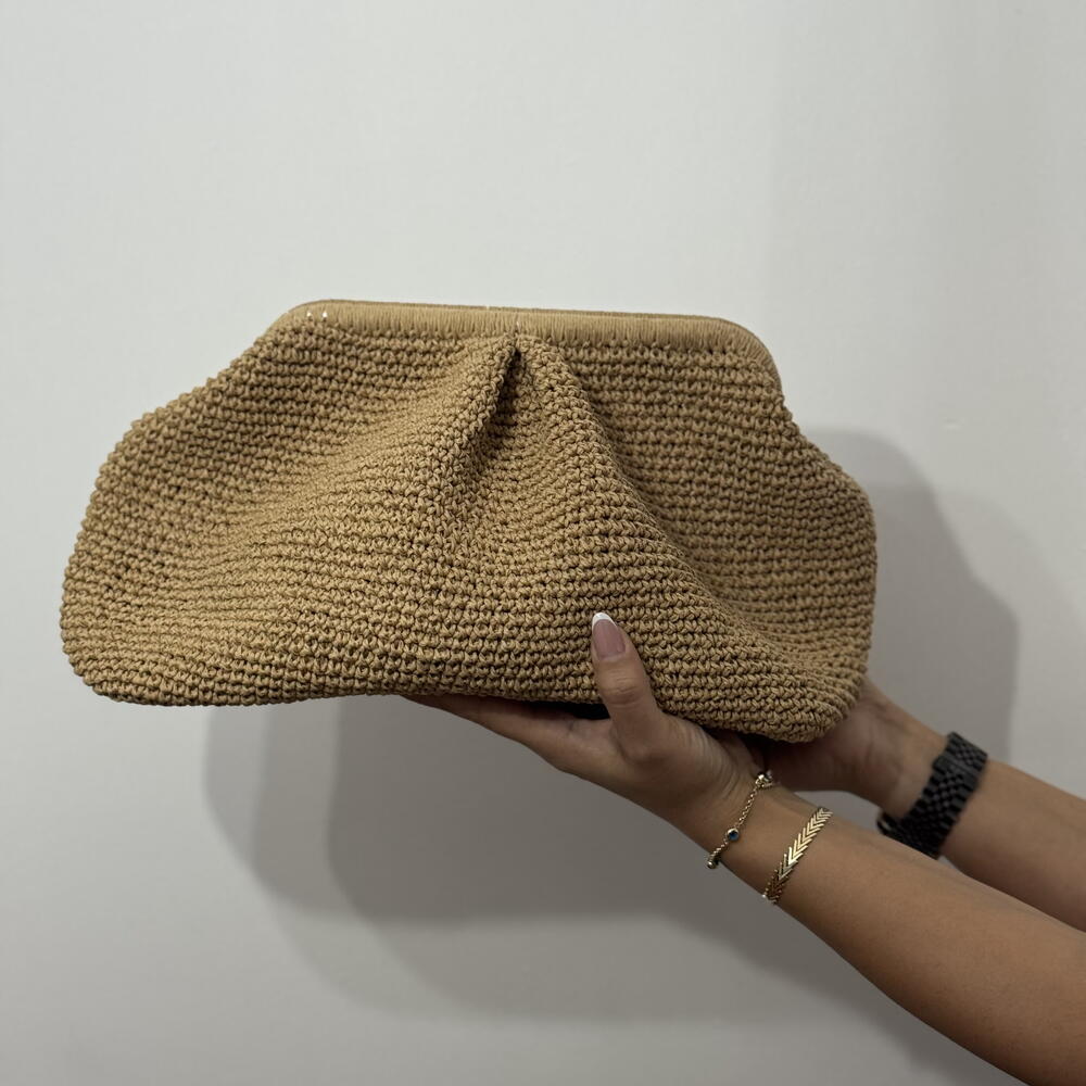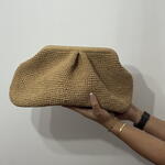 100% Hand-Woven Paper Cord Pleated Clutch Bag, Straw Hand-Woven Handbag, Burslu Bag