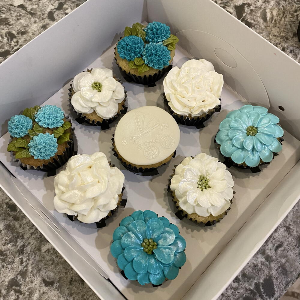 The box contains 9 cupcakes. Flower colors and varieties can be customized to your preference. Images and text can be added. Available for special occasions. - Flower colors and varieties can be customized to your preference. Images and text can be added. Available for special occasions. The box contains 9 cupcakes.