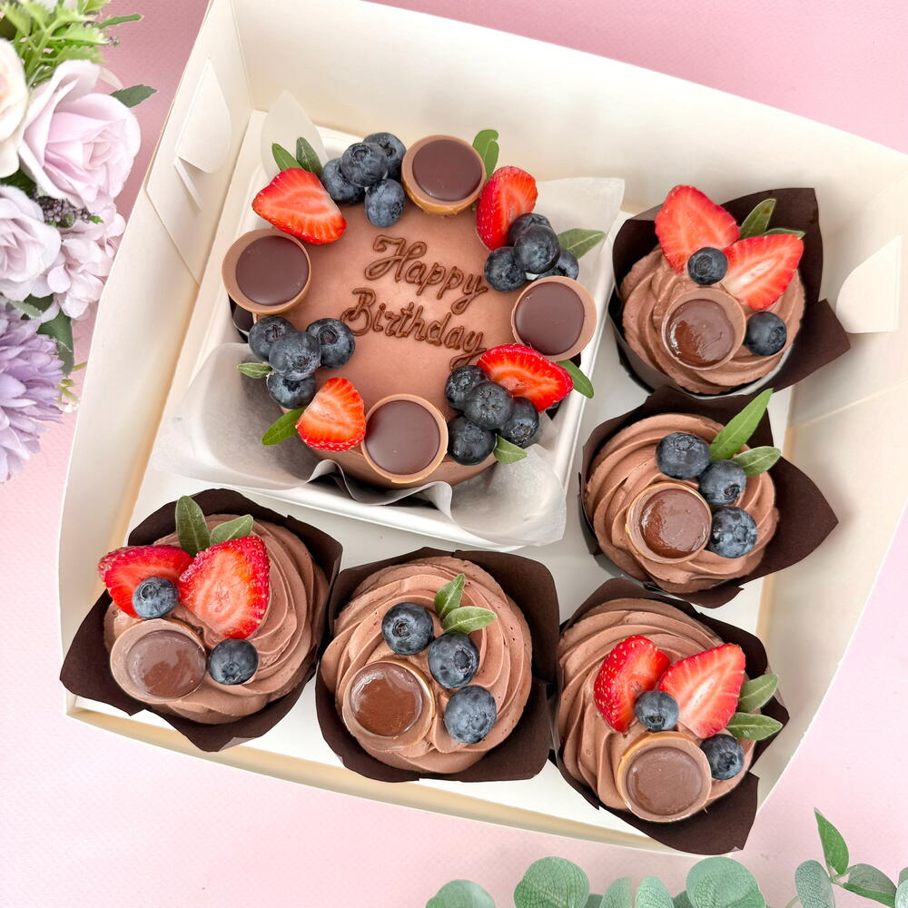 Elegant and stylish bento cake set with matching cupcakes 🤎 A perfect combination for birthdays, gifts, and special moments. Includes a minimalist “Happy Birthday” bento cake and beautifully decorated cupcakes with chocolate details. Perfect as a gift or a ready-to-serve celebration box. You can customize the design — change the text, colors, or decorations. ✨ Same-day delivery available ✨ Handmade with premium ingredients ✨ Custom design available