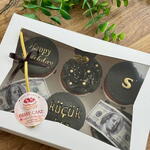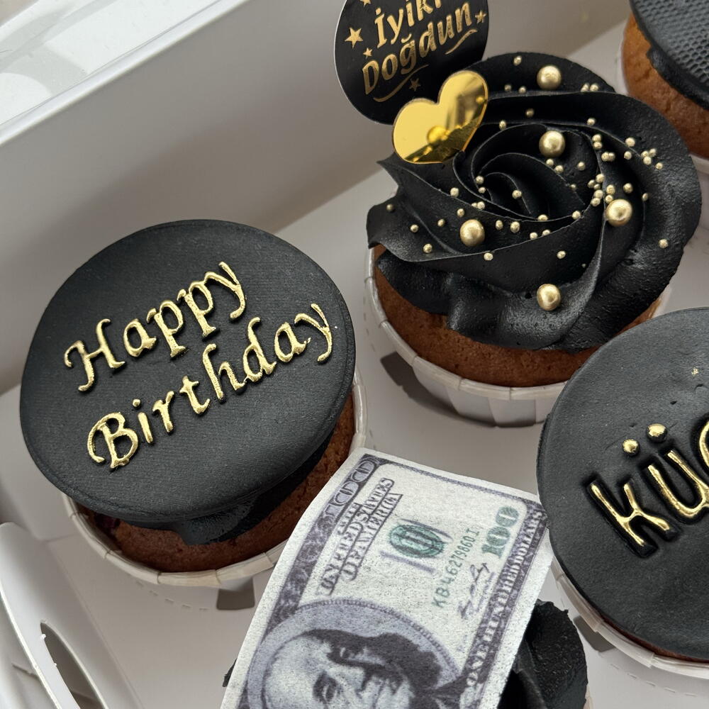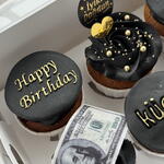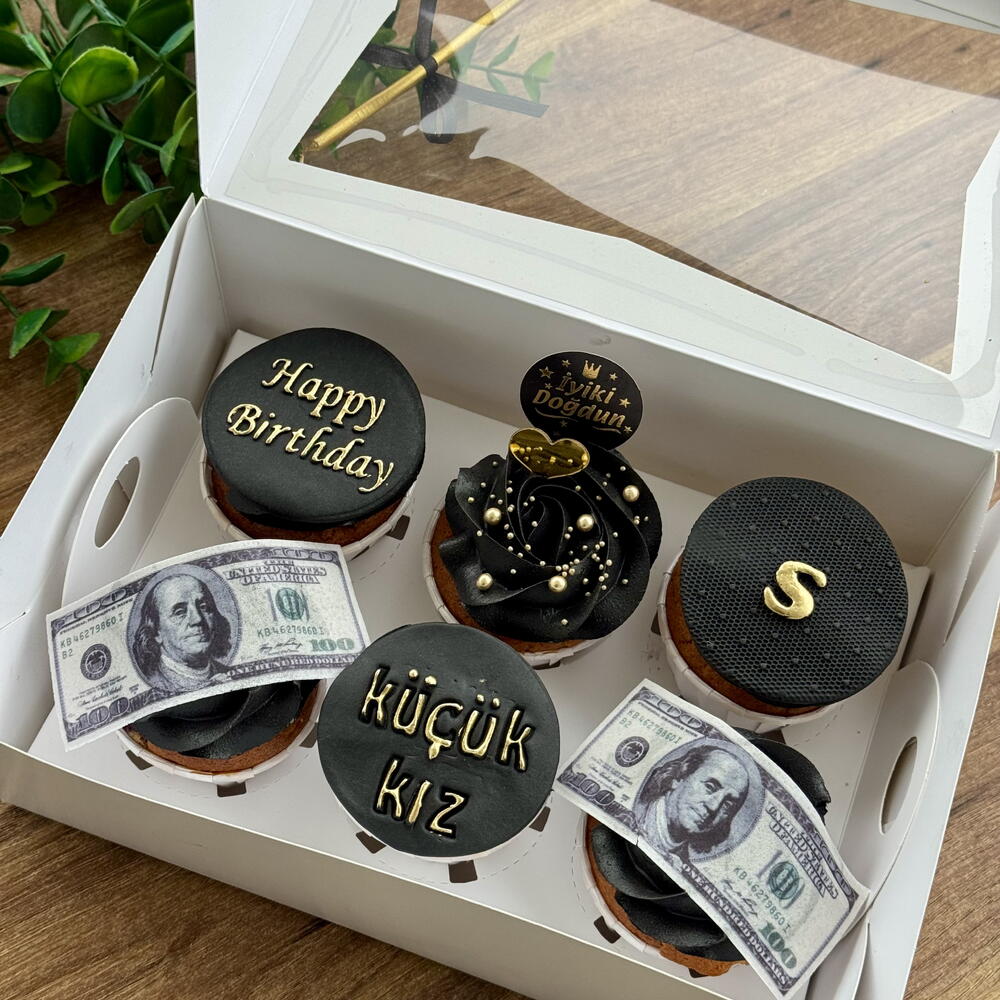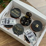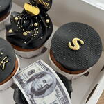 6-piece cupcake box with Black Gold inscription and edible dollar signs