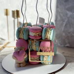 A stylish and elegant cake made entirely of delicate chocolate macarons with a smooth and creamy filling. Perfect for birthdays and special occasions. Decorated with modern candles for a beautiful celebration look. Each cake is handcrafted with attention to detail, combining a refined appearance and rich chocolate flavor.