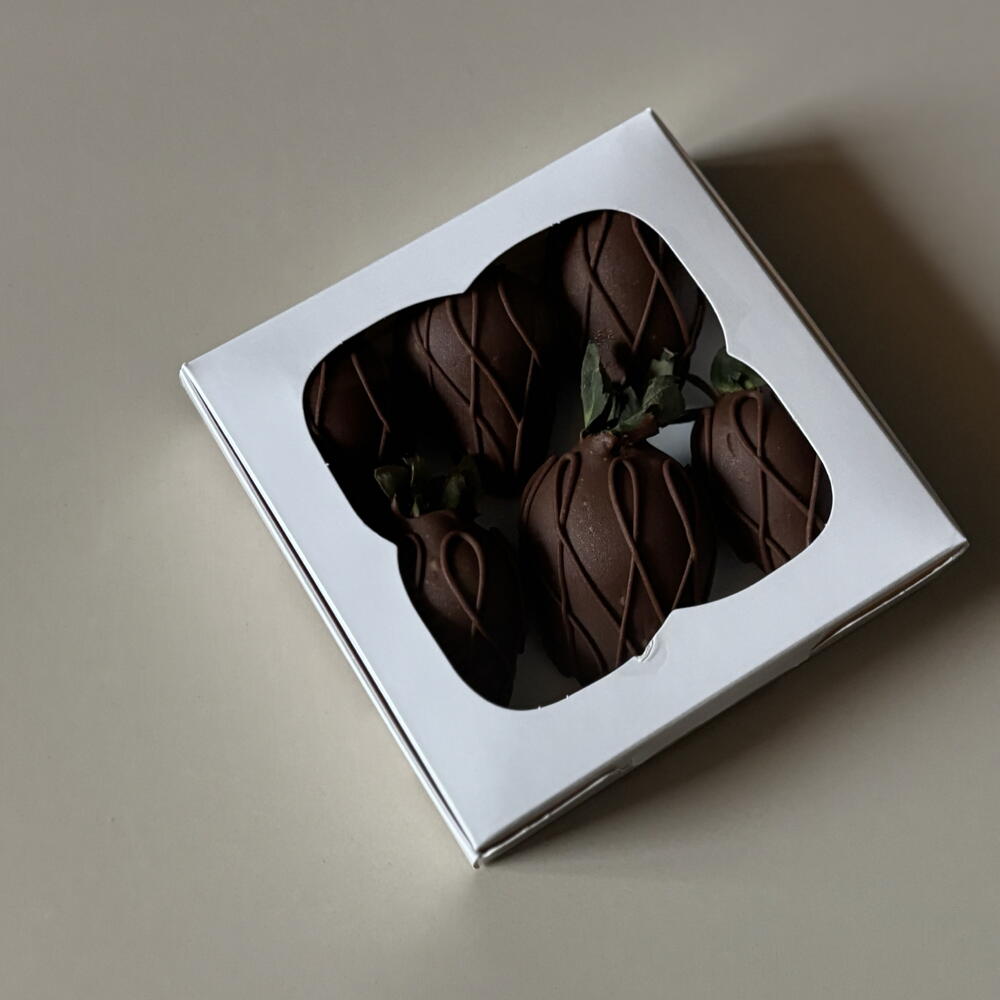The most beautiful and low-calorie dessert, perfect for any celebration. Fresh strawberries coated in milk chocolate made with natural ingredients and the finest quality. strawberries, white chocolate (sugar, cocoa butter, whole milk powder, whey powder, emulsifiers (soy lecithin, polyglycerol polyricinoleate), salt, flavoring.)