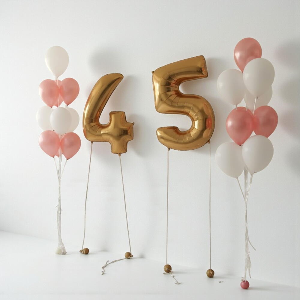 There are a total of 16 foil balloons: 8 on one side and 8 on the other. The number can be customized on request. It's a wonderful gift.