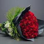 This striking bouquet contains 101 red roses symbolizing romance and love. Adorned with substantial cispo and foliage that give it a noticeable heft, this magnificent bouquet has the power to impress your loved ones. With hand-finished details and a striking appearance, this carefully prepared bouquet makes any special day even more special. A guaranteed way to a big smile and a lasting impression!