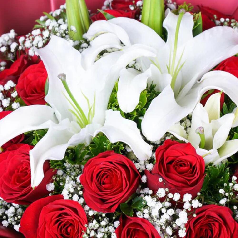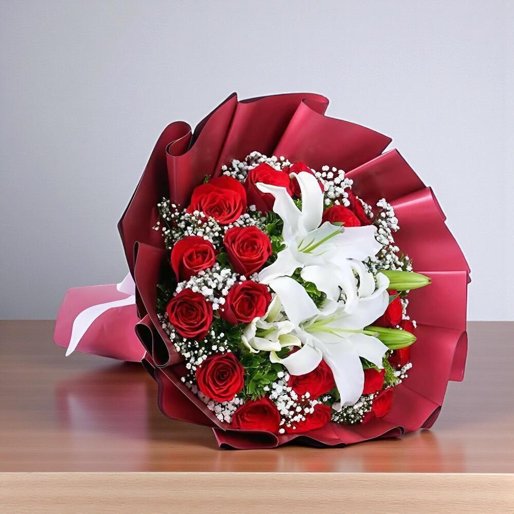 kırmızı gül - 17 pcs beyaz lilyum - 3 pcs