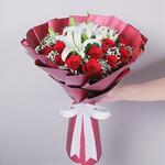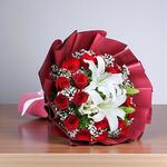 17 Kırmızı Gul ve Lilyum Tasarım Buketi