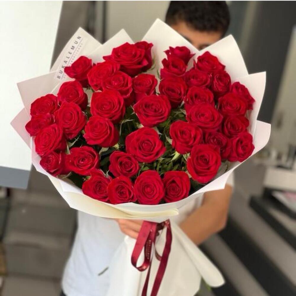This elegant bouquet made with 41 red roses expresses love and passion elegantly. An ideal choice to present an unforgettable gift to your loved ones on special occasions.