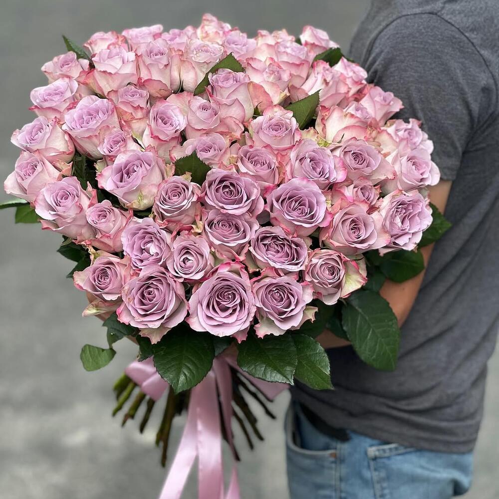 This enchanting flower bouquet hosts 51 elegant lilac and pink roses. Romantic and delicate, this mix of flowers adds a wonderful touch to any room. Each rose, carefully selected, retains its beauty for a long time. This stunning bouquet will be a perfect choice to pamper your loved ones. Impress them and create a memory that holds a special place in their hearts.