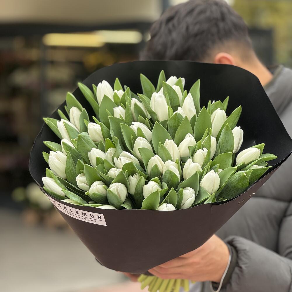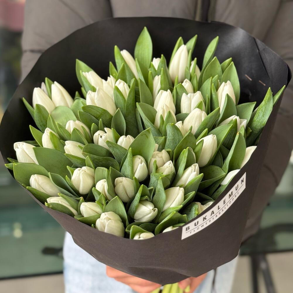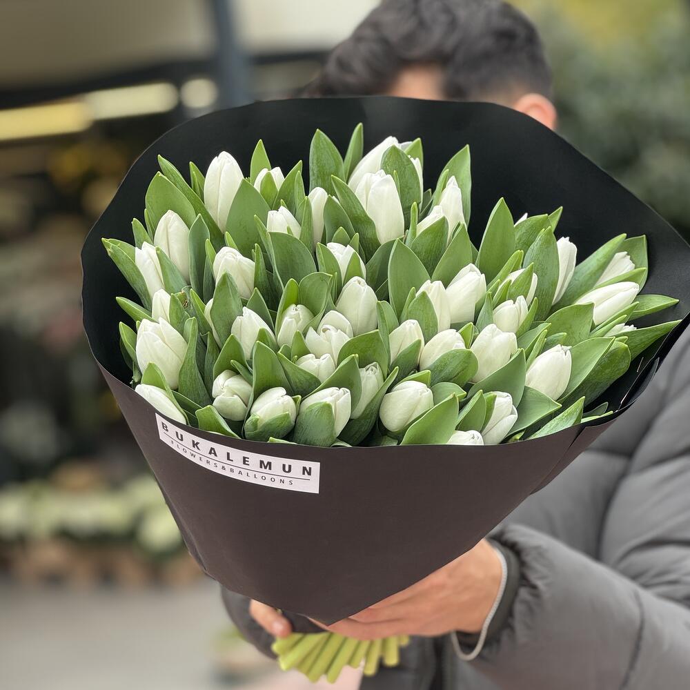 This specially prepared flower bouquet consists of 51 white tulips, representing elegance and beauty. These magnificent tulips are a perfect choice to show your love and respect to your loved ones. With their aesthetic designs and pleasant scents, they brighten up any environment. It is an ideal gift option for the most special days.
