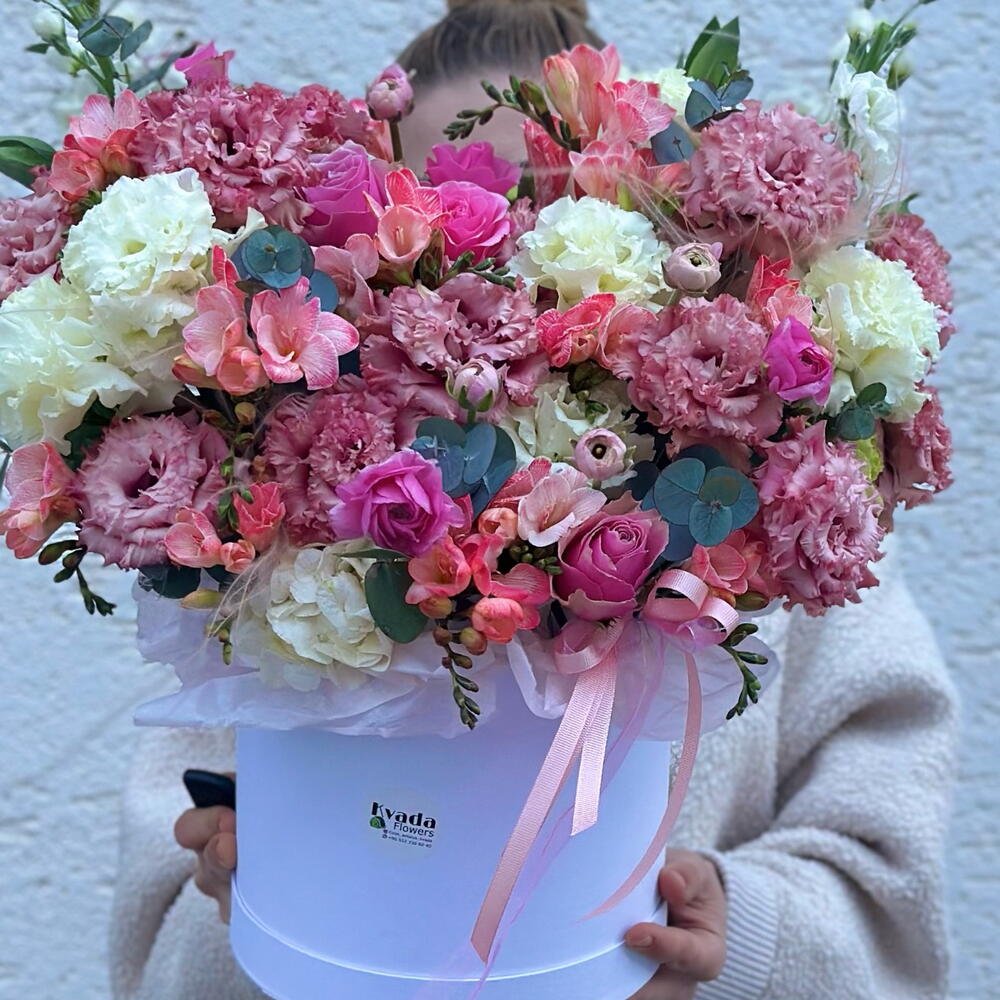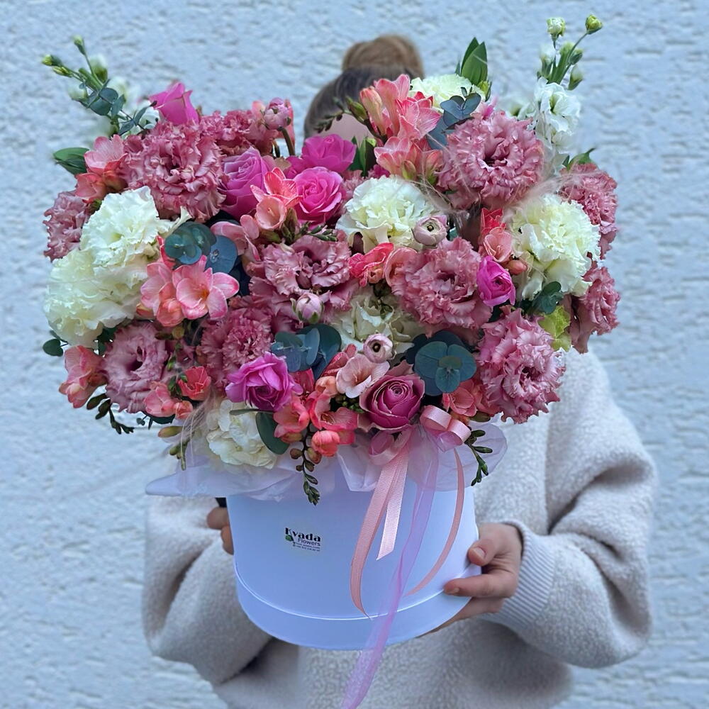 Elegant freesia, romantic lisianthus and chic ranunculus come together with refreshing touches of eucalyptus. This nature-inspired special design reflects the freshness of spring and the most delicate expression of emotions. Each box is carefully prepared to present an aesthetic, emotion-focused gift.