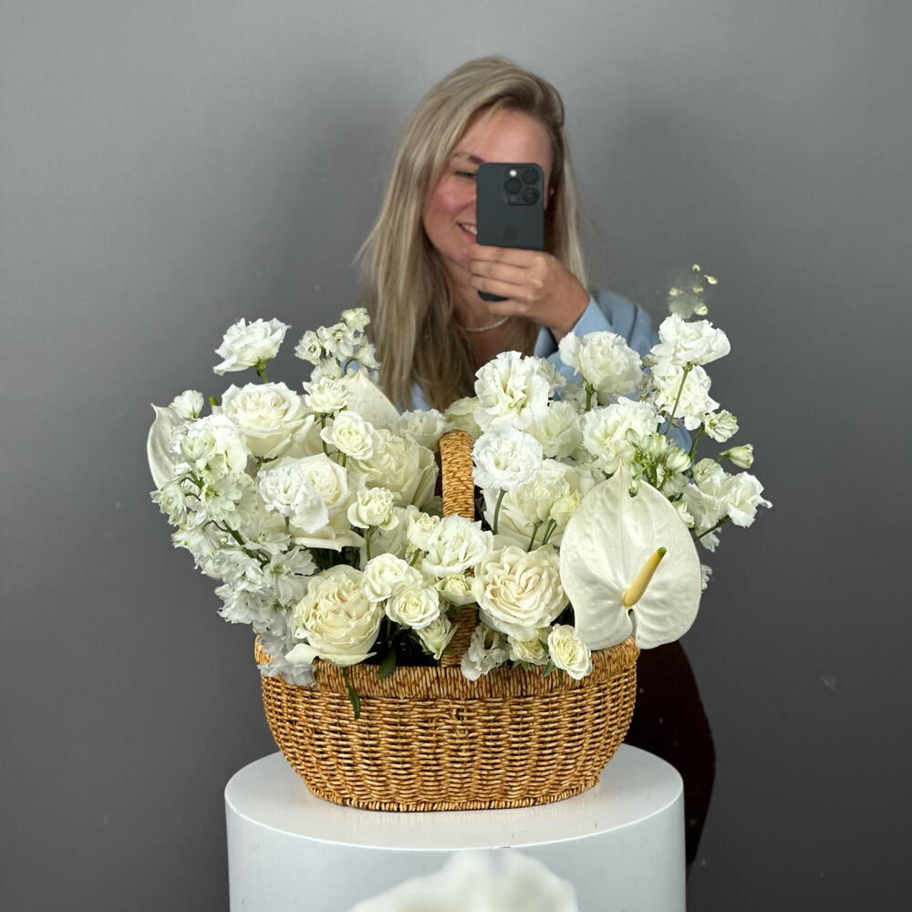 Basket of white flowers