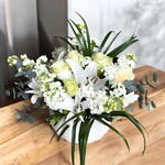 This special design product includes 3 exotic lily kandili, 6 imported white roses and 6 elegant white spray flowers. This unique composition is a perfect choice to make any of your special moments privileged and unforgettable. Ideal for a touch of elegance and sophistication, this flower arrangement is a perfect way to show your loved ones how special they are.