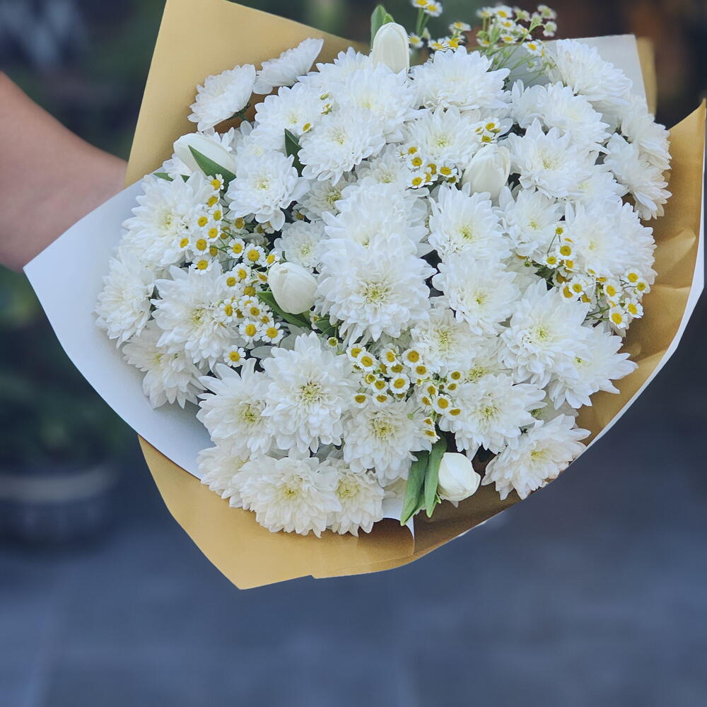 white chrysanthemum - 9 pcs beyaz lale - 7 pcs mini daisy - 5 pcs