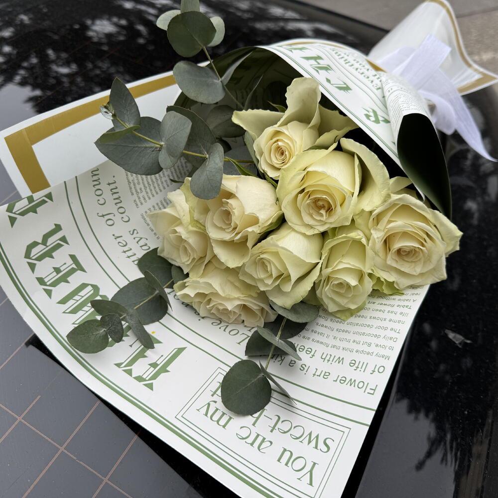 eucalyptus - 4 pcs beyaz gül - 8 pcs