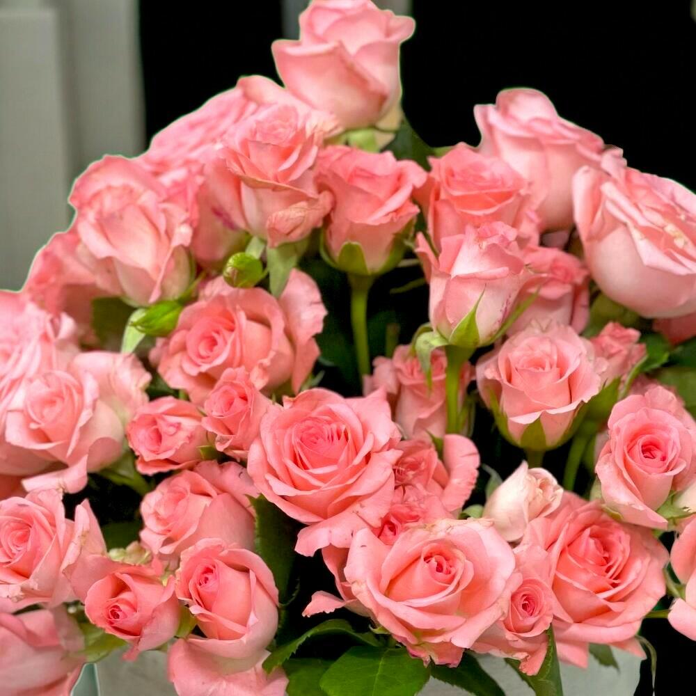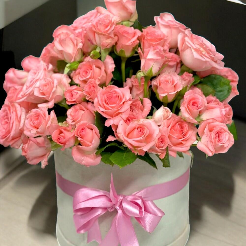 pink spray roses - 40 pcs white box - 1 pcs pink ribbon - 2 pcs