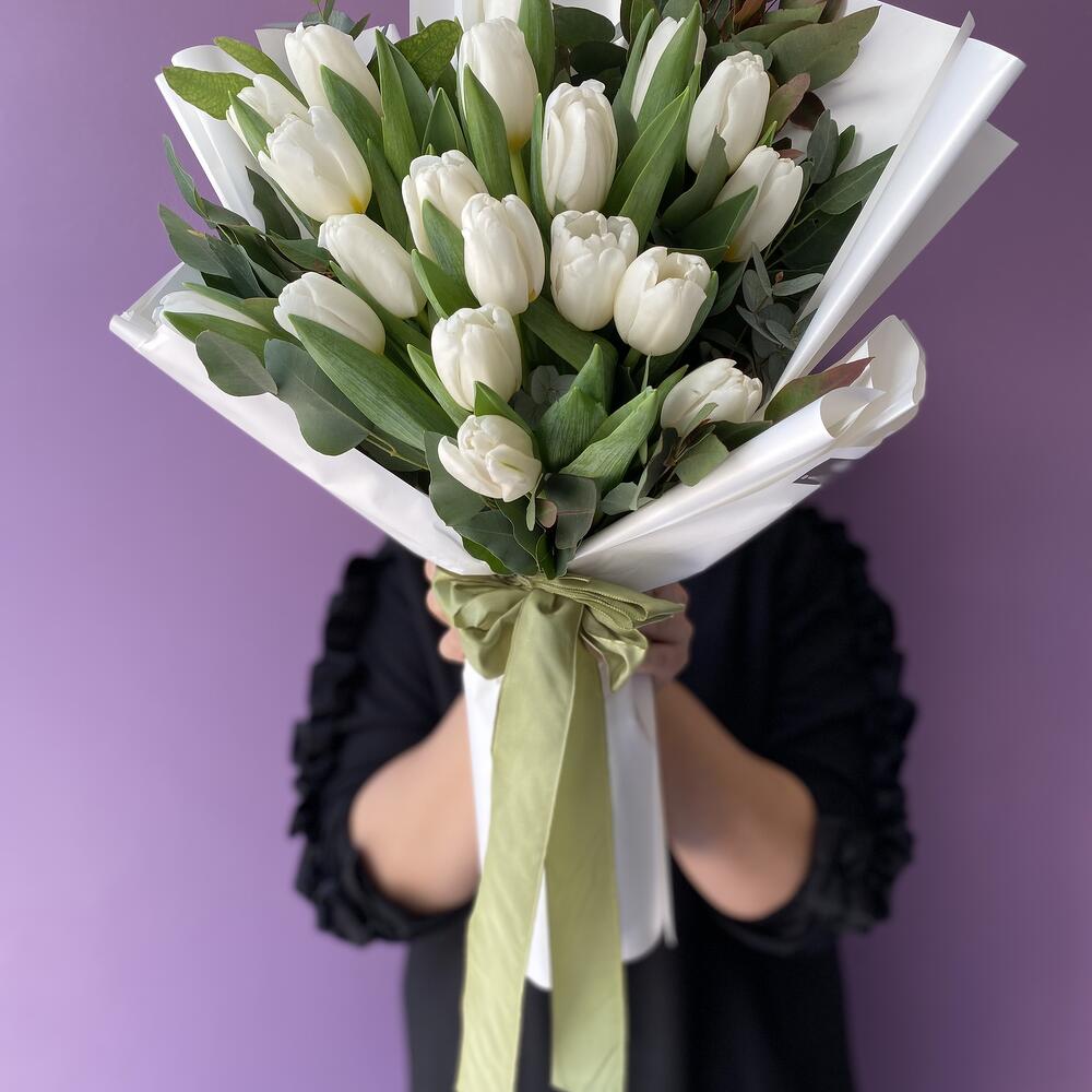 Eucalyptus - 10 pcs beyaz lale - 19 pcs