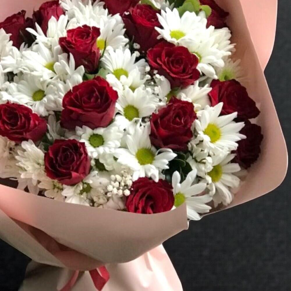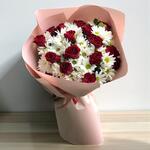 kırmızı gül - 15 pcs beyaz papatya - 10 pcs