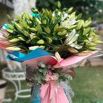 This striking bouquet made with one of nature's most elegant gifts, white lilies, creates an enchanting atmosphere with its refreshing energy. The buds that have not yet opened will bloom over time, helping to keep your bouquet beautiful for days. With turquoise and pink packaging details offering a modern look, this arrangement will make your special occasions unforgettable. To prolong your bouquet's life, trim a little off the ends of the stems each day and place them in fresh water. It is recommended to store it in a cool place out of direct sunlight. After the lilies open, you can carefully remove their pollen to help the flowers last longer.