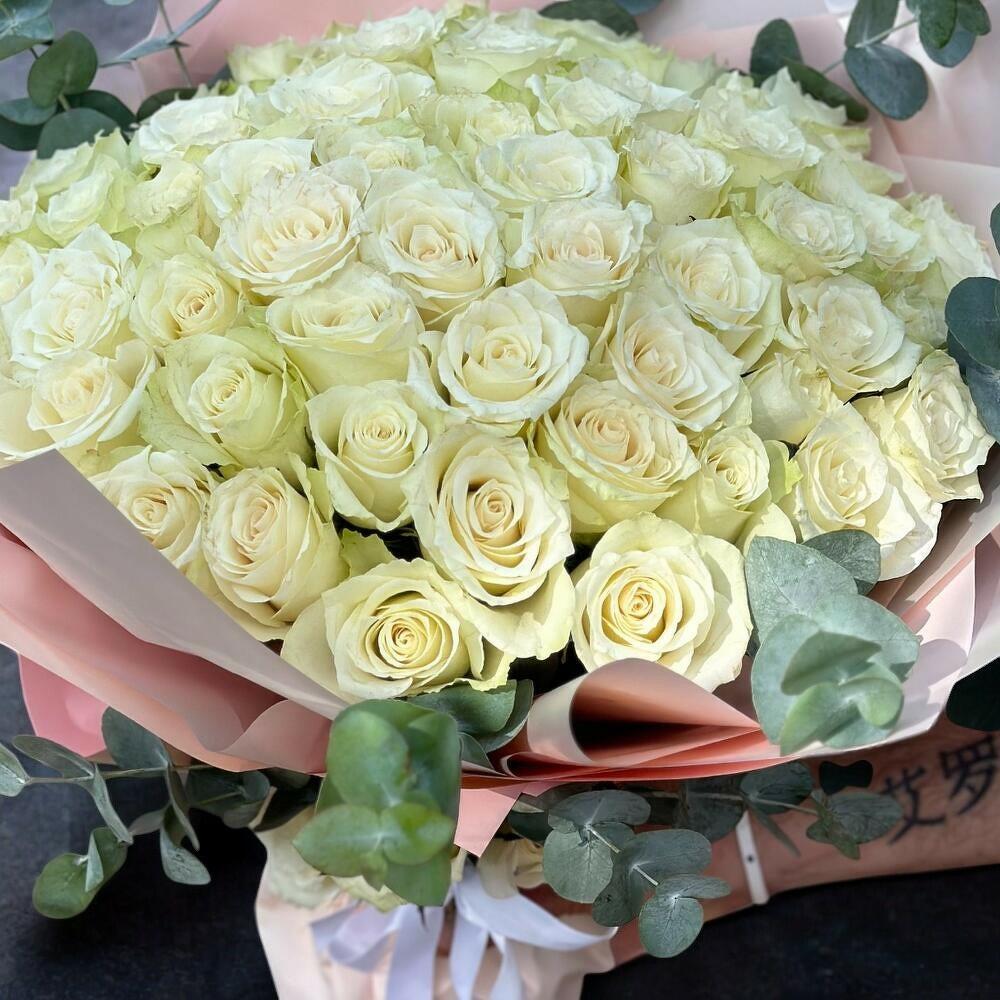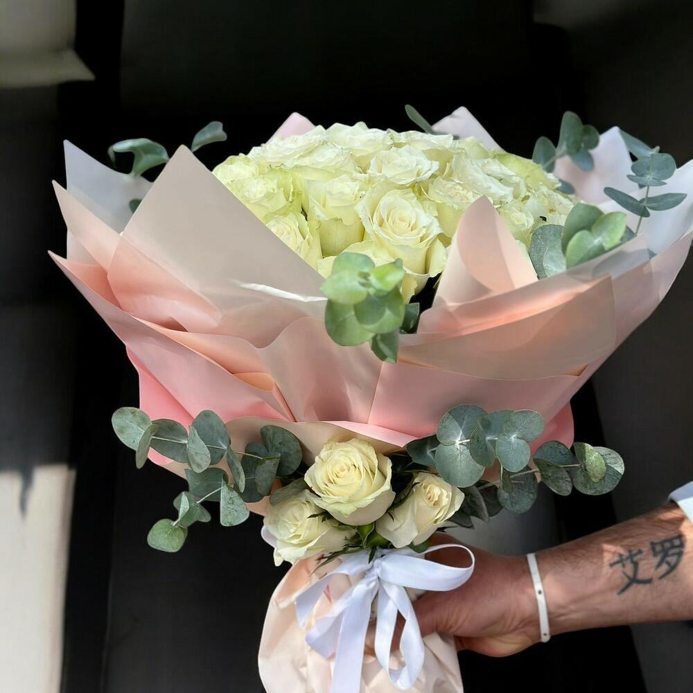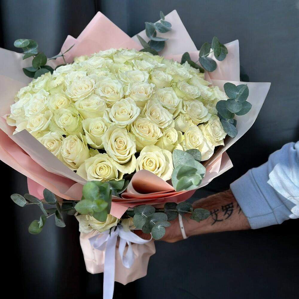 beyaz gül - 51 pcs okaliptus - 6 pcs