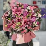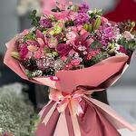 statica - 30 pcs pembe lilyum - 4 pcs pembe gül - 10 pcs pink lisianthus - 15 pcs pink stock flower - 5 pcs pembe çardak gül - 20 pcs