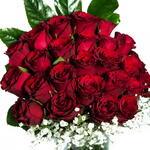 Gypsophila - 3 pcs Aspidistra - 5 pcs kırmızı gül - 25 pcs cam vazo - 1 pcs