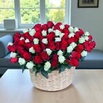This special basket of flowers is adorned with 101 magnificent red and white roses. Ideal for a sweet emotional expression, this elegant basket is a romantic and unforgettable choice to steal your loved ones' hearts. With the fragrance emitted by each rose, this flower basket instantly brings life to any room. Express your message in the beautiful language of these flowers.