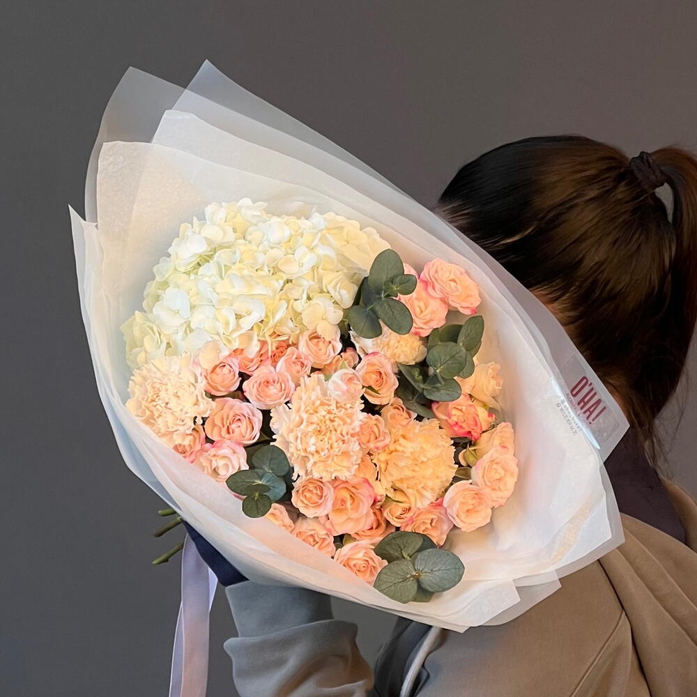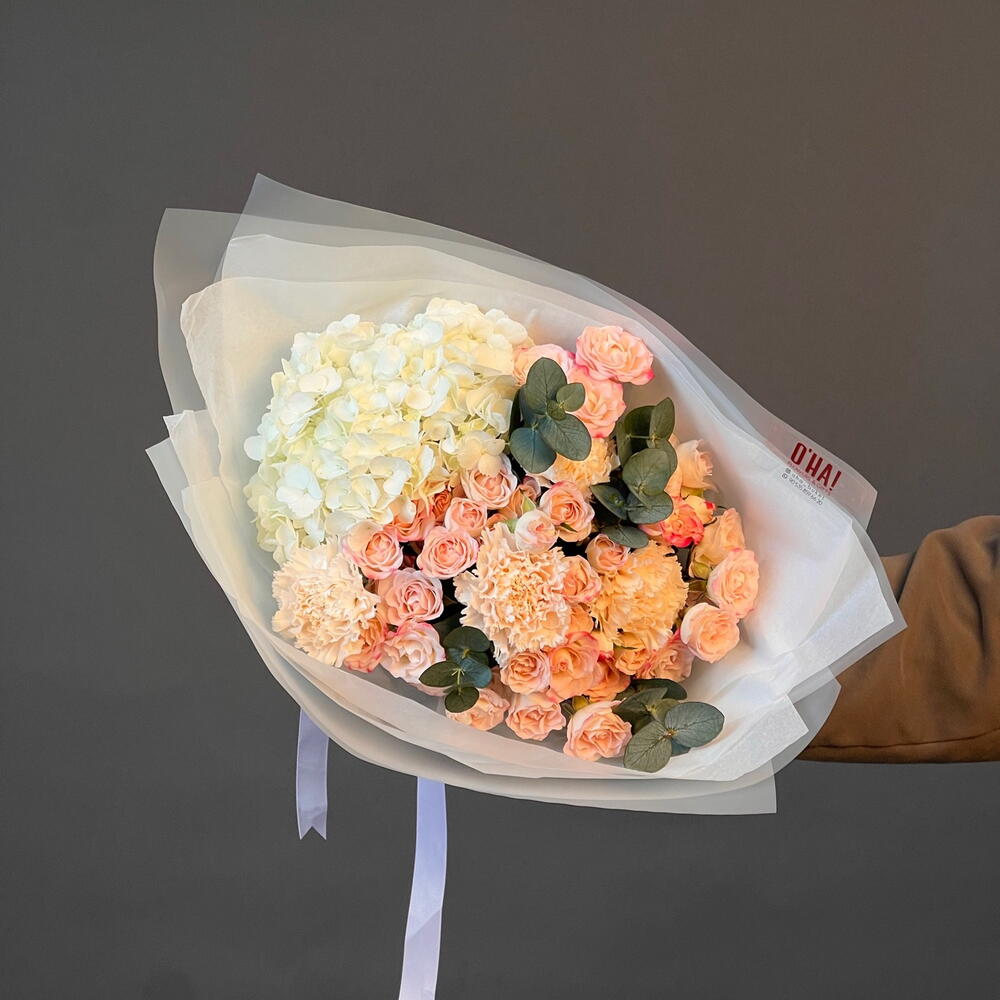 Delicate Bouquet with Roses, Hydrangea Dianthus A soft and elegant bouquet combining roses, hydrangea, and dianthus — perfect for tender feelings and special moments⭐️