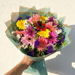 This special bouquet made from energetic, brightly colored gerbera flowers is an ideal choice to add happiness and cheer to your loved ones. 🌺 Flowers in shades of yellow, pink, purple, red and white come together to create an elegant harmony. It is a perfect choice for a birthday, anniversary, congratulatory or surprise gift. At Venus Flowers Antalya, we provide fast delivery to 5-star hotels in the Belek, Kadriye, Boğazkent and Lara areas. 💐 If you're looking for a stylish gift with luxury packaging, this colorful gerbera bouquet is perfect for you!