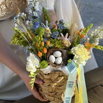 Freesia - 3 pcs Chrysanthemum - 2 pcs Dianthus - 3 pcs Ornithogalum - 4 pcs Wheat - 3 pcs Bell - 2 pcs