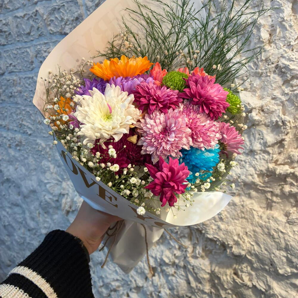 This exquisite flower bouquet has been carefully prepared with 8 stems of gypsophila, 4 stems of iron plant and various chrysanthemums. Each flower has been carefully selected to offer you a fresh and vibrant experience. This bouquet is the perfect way to show your loved ones how much you value them.