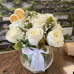 beyaz gül - 9 pcs okaliptus - 10 pcs orange - 2 pcs