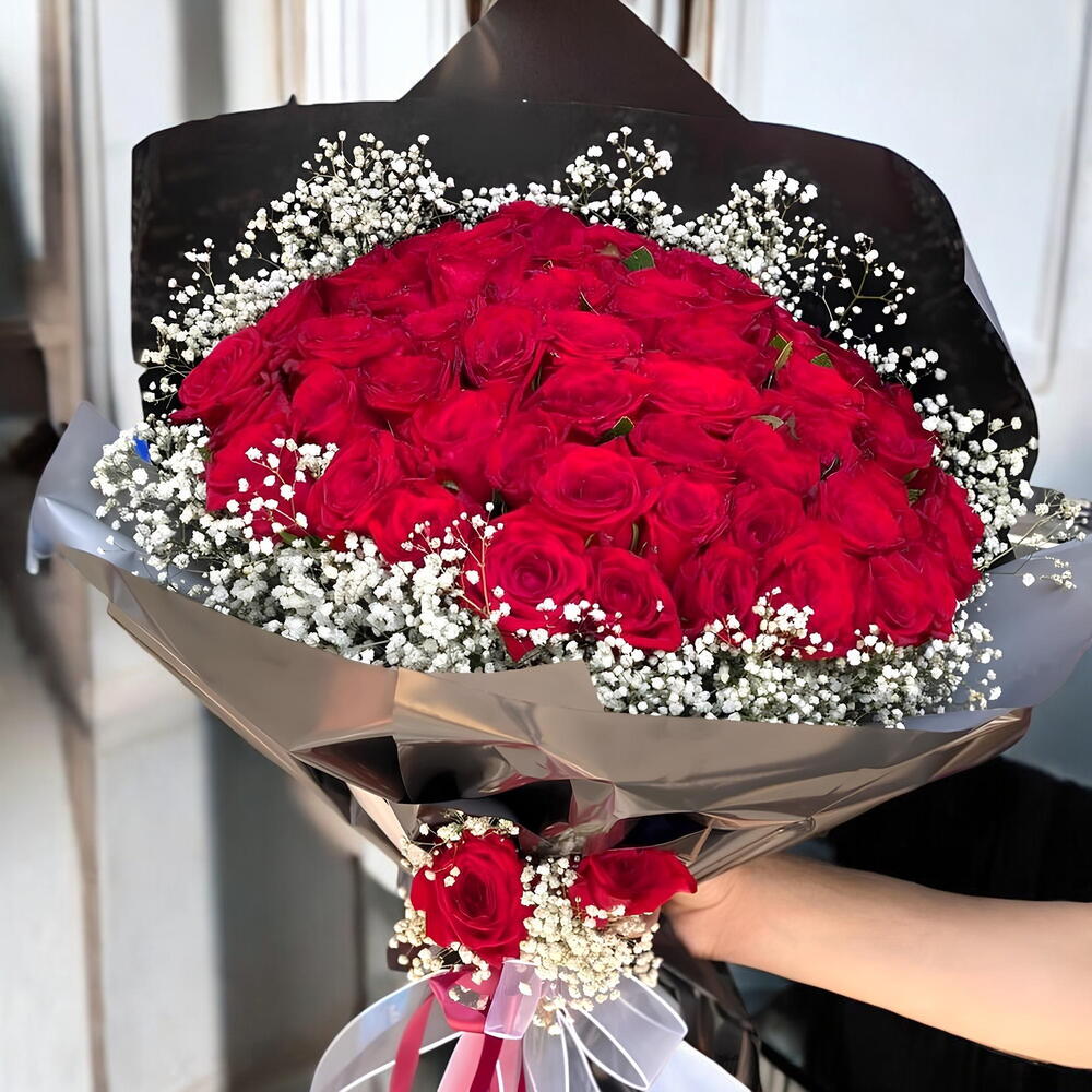 kirmizi gül - 40 pcs cipso - 10 pcs
