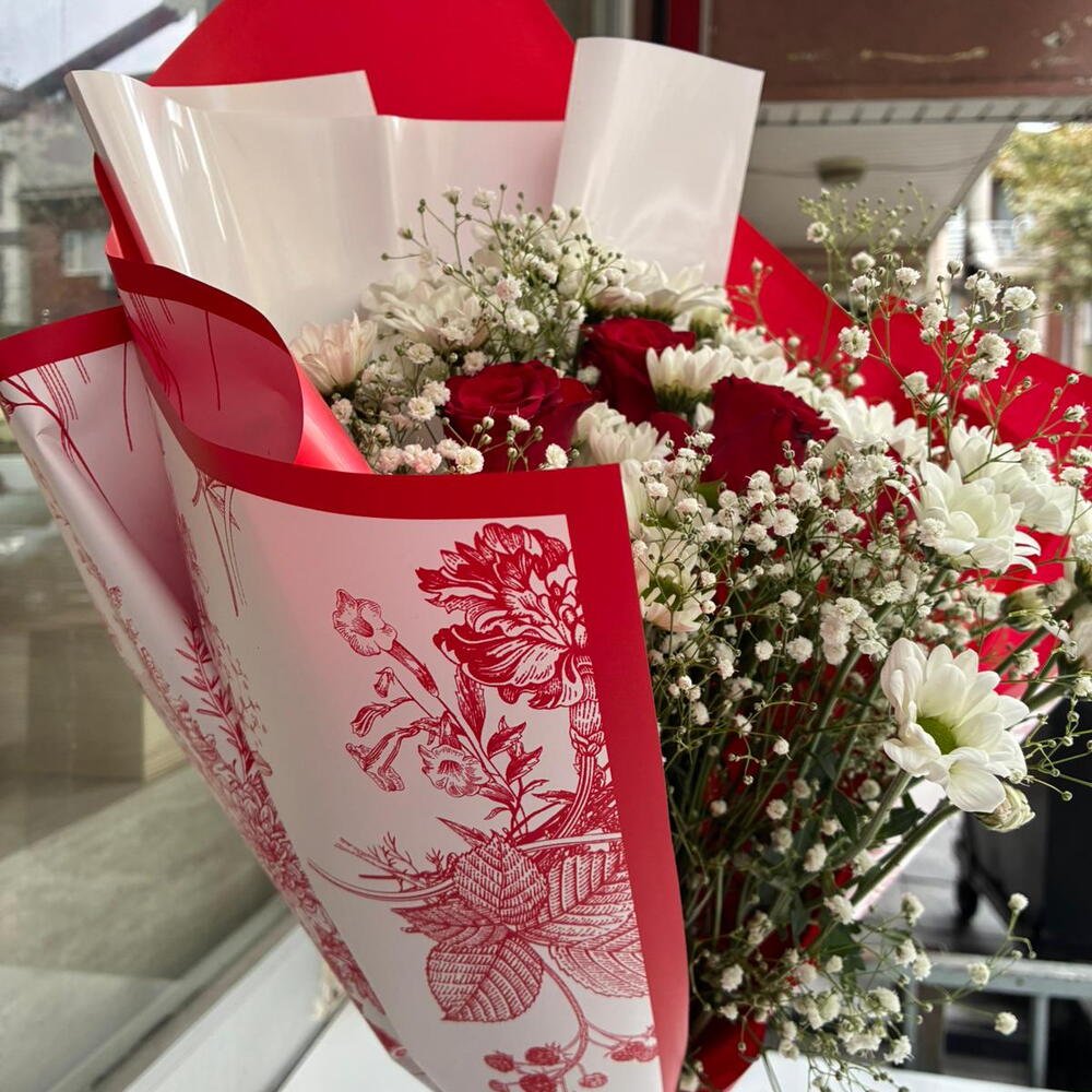 This romantic flower bouquet contains a magnificent combination of elegant roses and innocent daisies. Each has been carefully selected and arranged. Includes 1 bouquet. Whether for a special day for your loved one or to make an ordinary day special, this beautiful flower bouquet will be a perfect choice. You can order now to add color and freshness to your life.