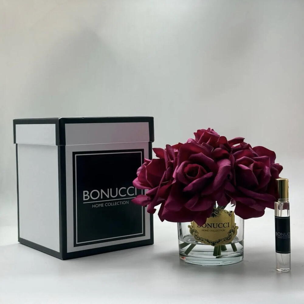 7-piece Gold Glass Vase Rose Arrangement Living Room Table Top Decor - Burgundy