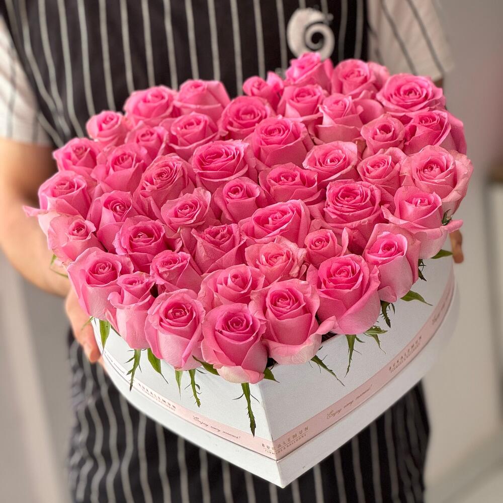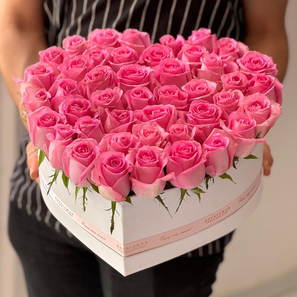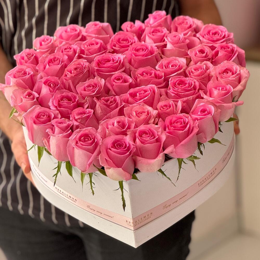 Kalp kutuda 45 pembe ithal gül