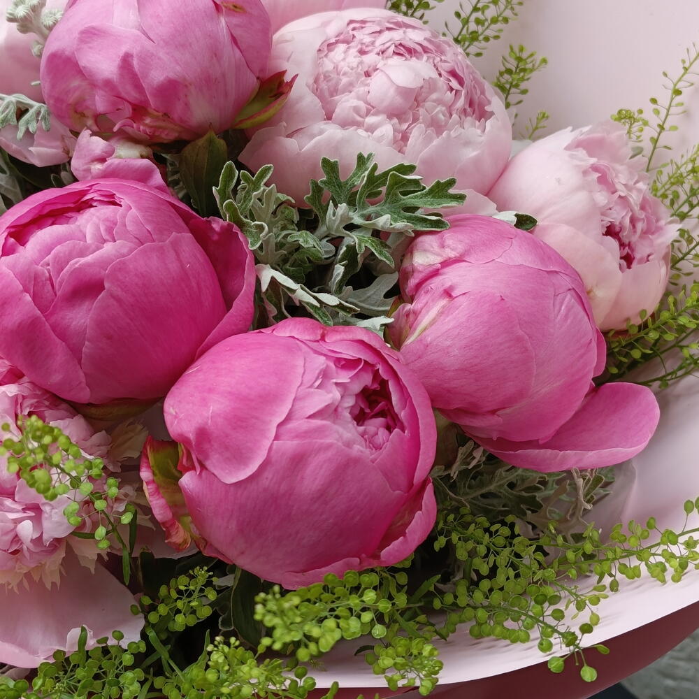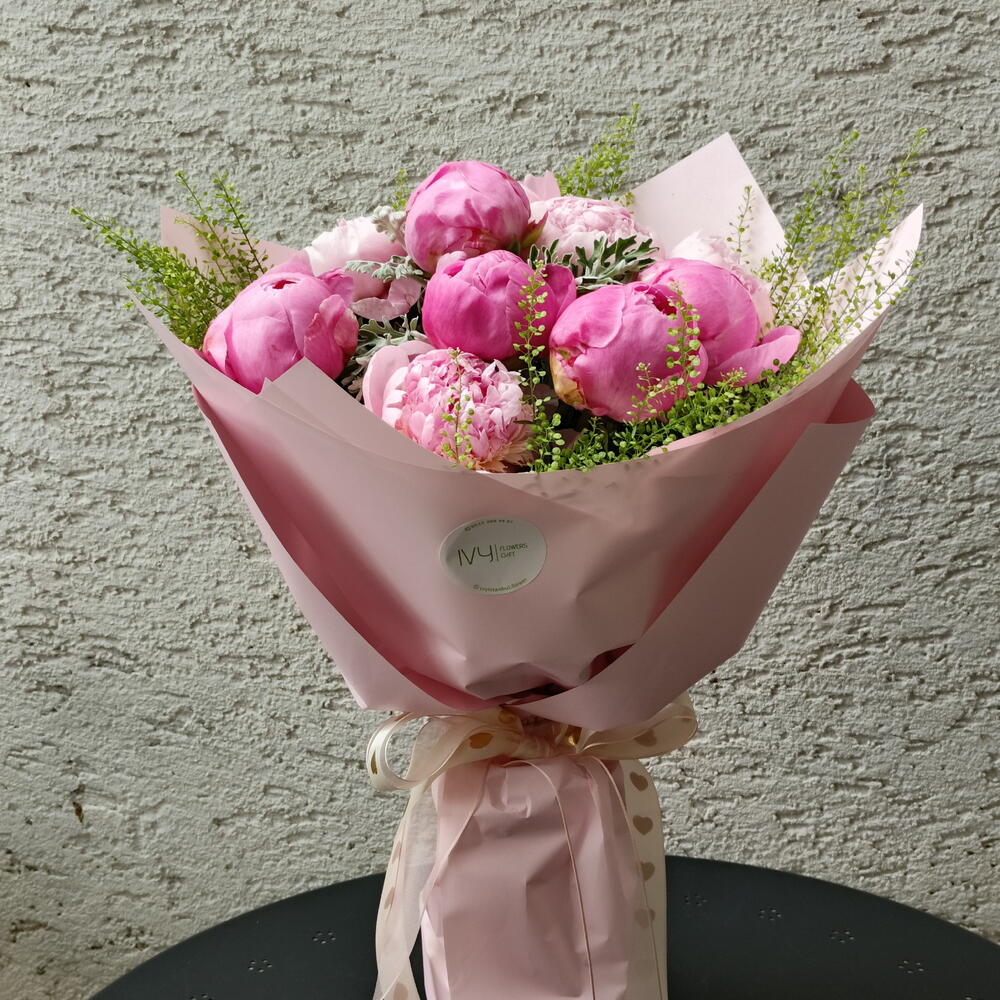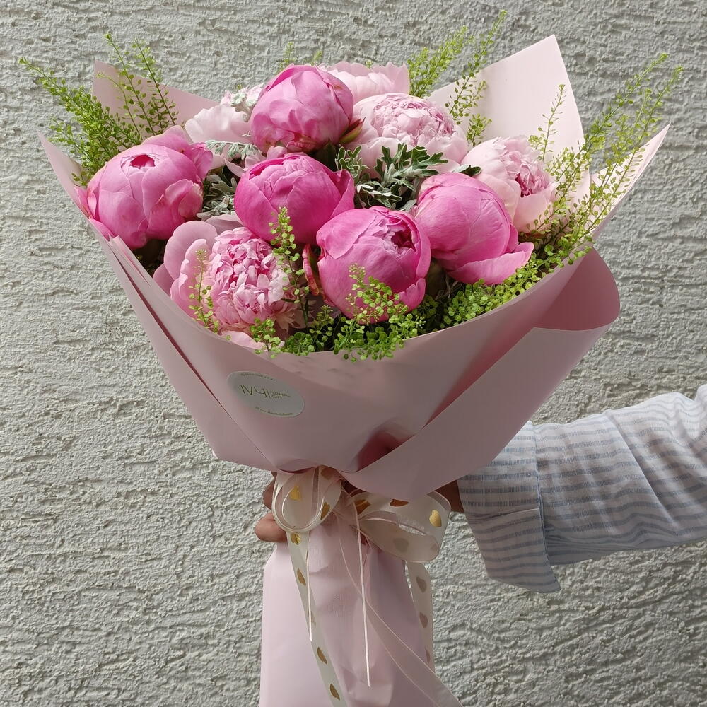 The magnificent appearance and magical scent of the peony flower express your love in this bouquet.