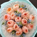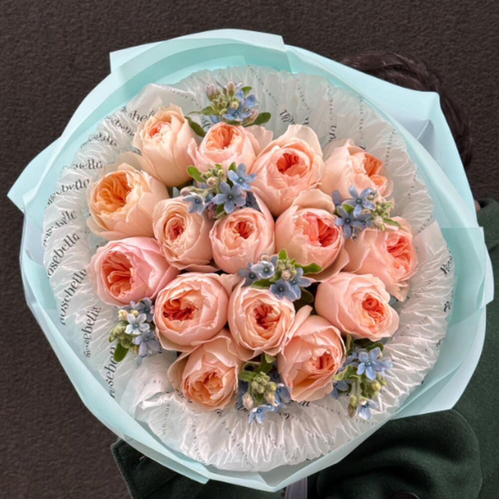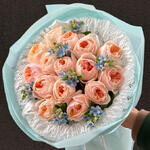 Unique Juliet Roses - 15 stems and magical Blue Tweedia flowers - 7 stems, a magnificent composition that brings love and joy together. This elegant flower bouquet will make every special moment more meaningful and present your loved ones with an impressive gift. The magnificent combination of lush and vibrant colors will leave you and your loved ones with unforgettable memories. A perfect choice as a heartfelt gift or a decorative item. Discover the mysterious and breathtaking beauty of the flower.