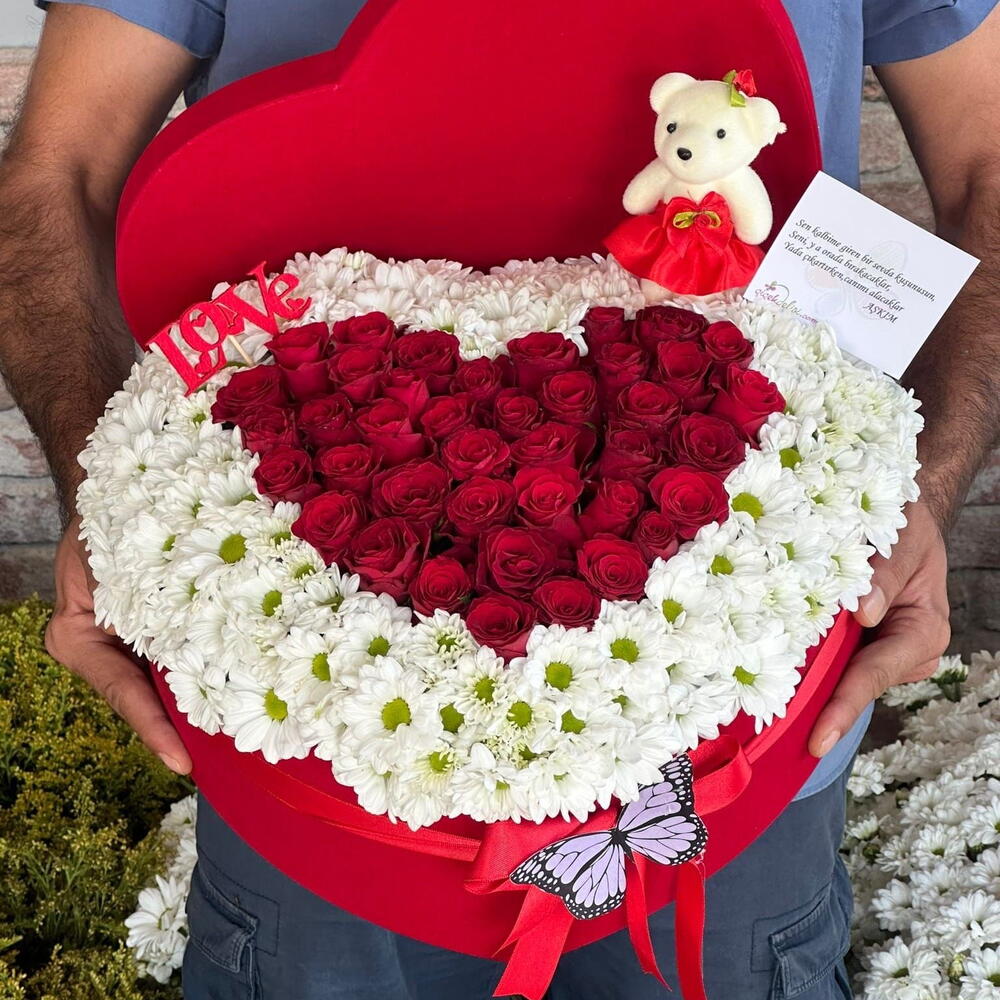 kırmızı gül - 40 pcs papatya - 100 pcs mini teddy bear toy - 1 pcs