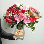 Red Rose, Pink Lily, and Anthurium Bouquet