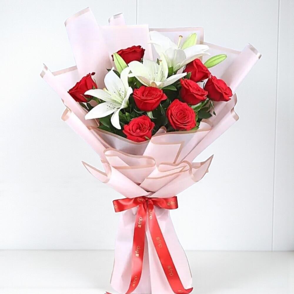 kırmızı gül - 8 pcs beyaz lilyum - 5 pcs