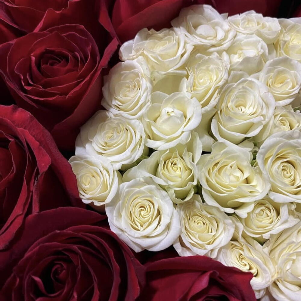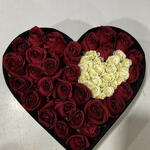 kırmızı gül - 29 pcs beyaz mini gül - 5 pcs heart-shaped box - 1 pcs oasis floristic - 2 pcs