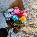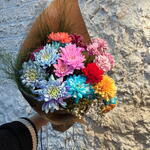 Colorful chrysanthemum bouquet in kraft paper