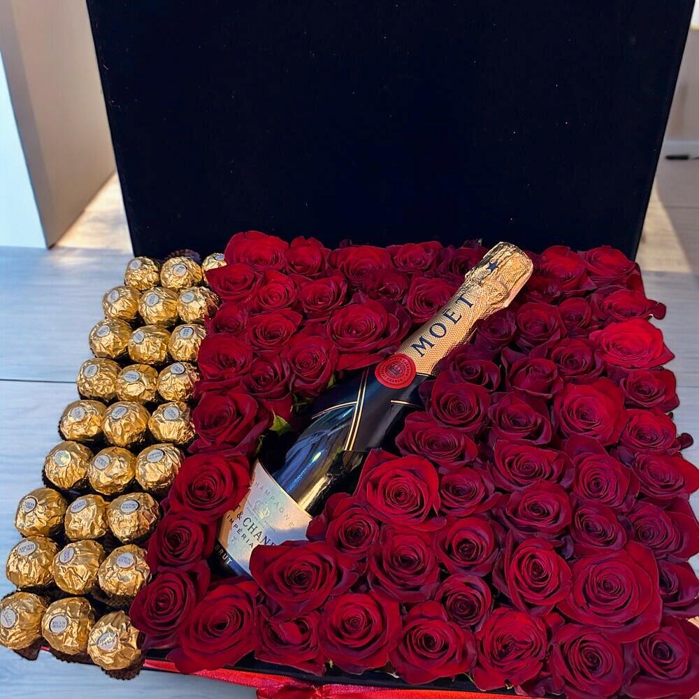 Luxury Love Box: Roses, Chocolate, and Champagne