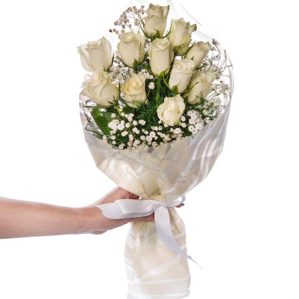 Bu zarif çiçek buketi, 3 adet gipsofila, 11 adet beyaz gül ve zarif bir beyaz kurdele ile bezenmiştir. 40 cmlik leopar desenli buket kağıdı ile sarılmış sofistike bir sunum yapar. Mükemmel bir hediye seçeneği olan bu buket, sevdiklerinize ne kadar önemli olduğunu söylemenin en güzel yollarından biridir. Bu özel buket, zarafeti ve zarif detaylarıyla her ortamda dikkat çekecektir.