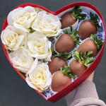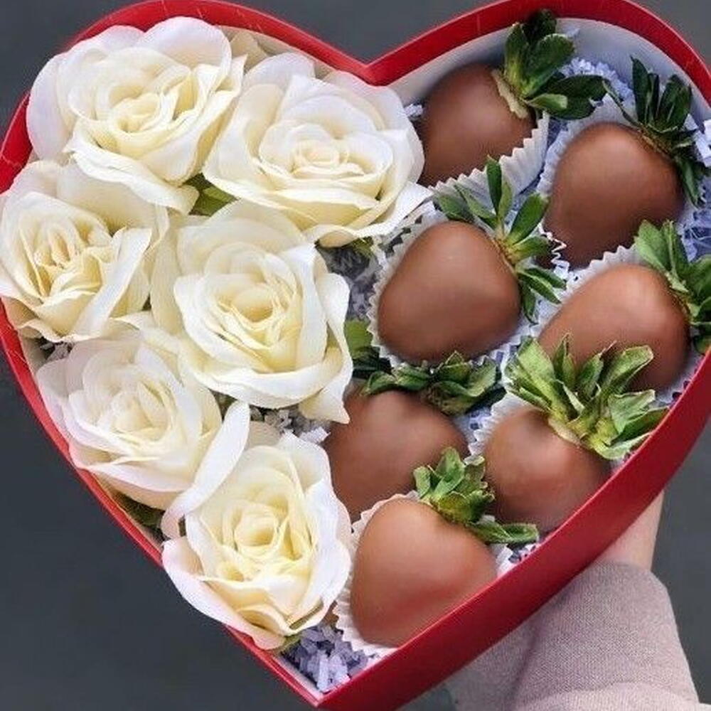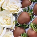 Strawberries, although a summer fruit, make us feel like summer in every season — there's nothing like them. Chocolate-covered strawberries are a completely different delight. Are you ready to take your loved ones on a whole new journey with Chocolate-Covered Strawberries? You can choose them as a gift for Women's Day, Valentine's Day, Mother's Day, anniversaries, or birthdays..Product contents: 15 chocolate-covered strawberries 6 cream-colored artificial roses