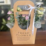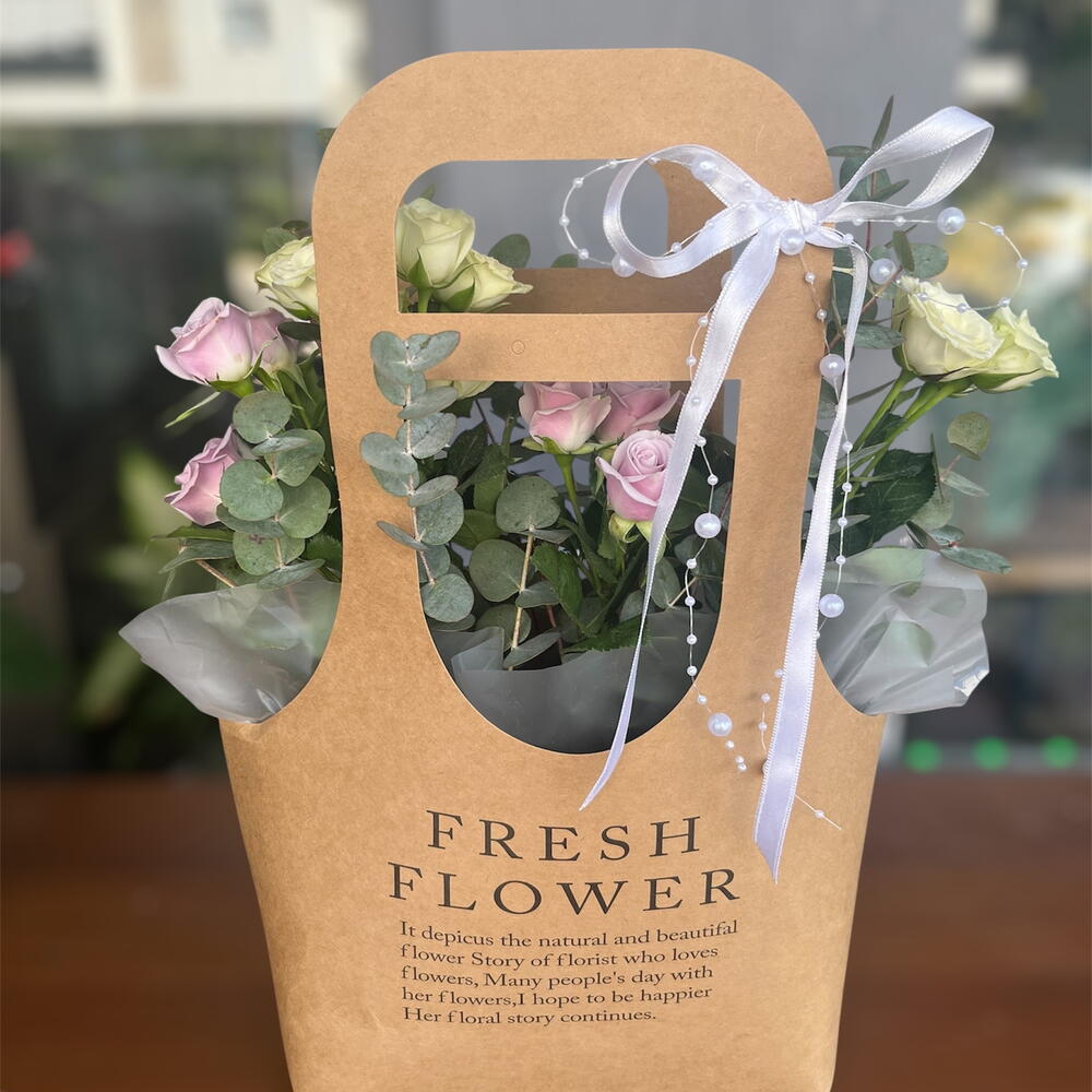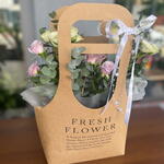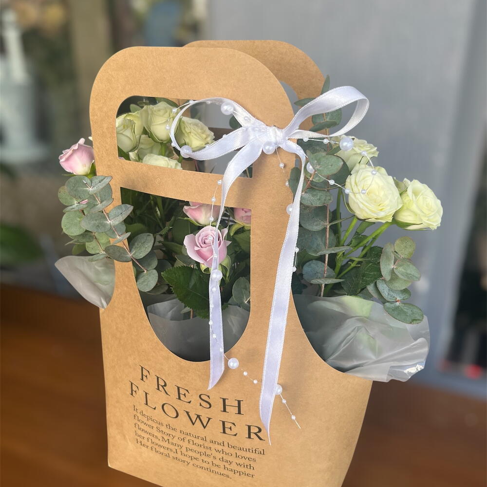 white arbor rose - 10 pcs okiliptus - 15 pcs flower bag - 1 pcs lilac arbor rose - 10 pcs
