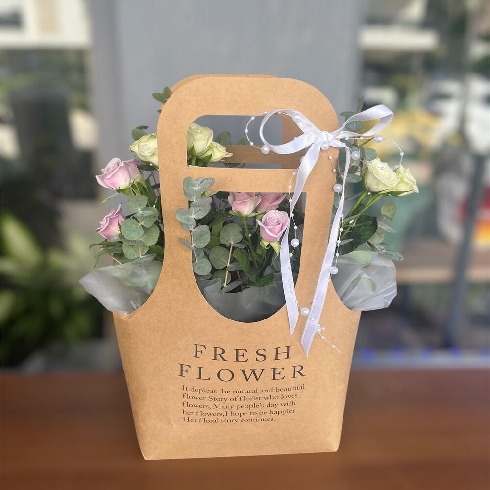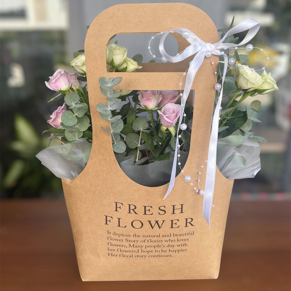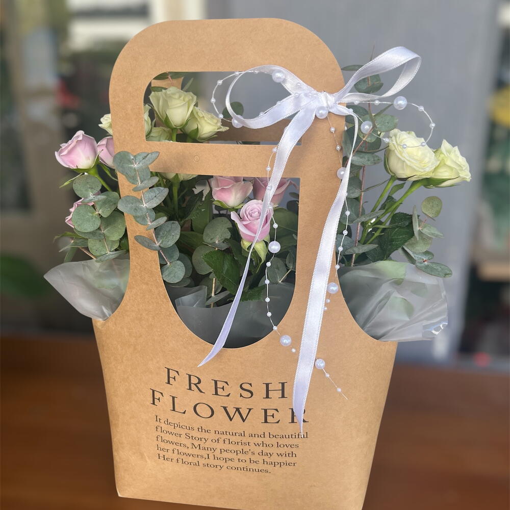 A new-generation arrangement with soft colors and a wonderful gift in a modern bag