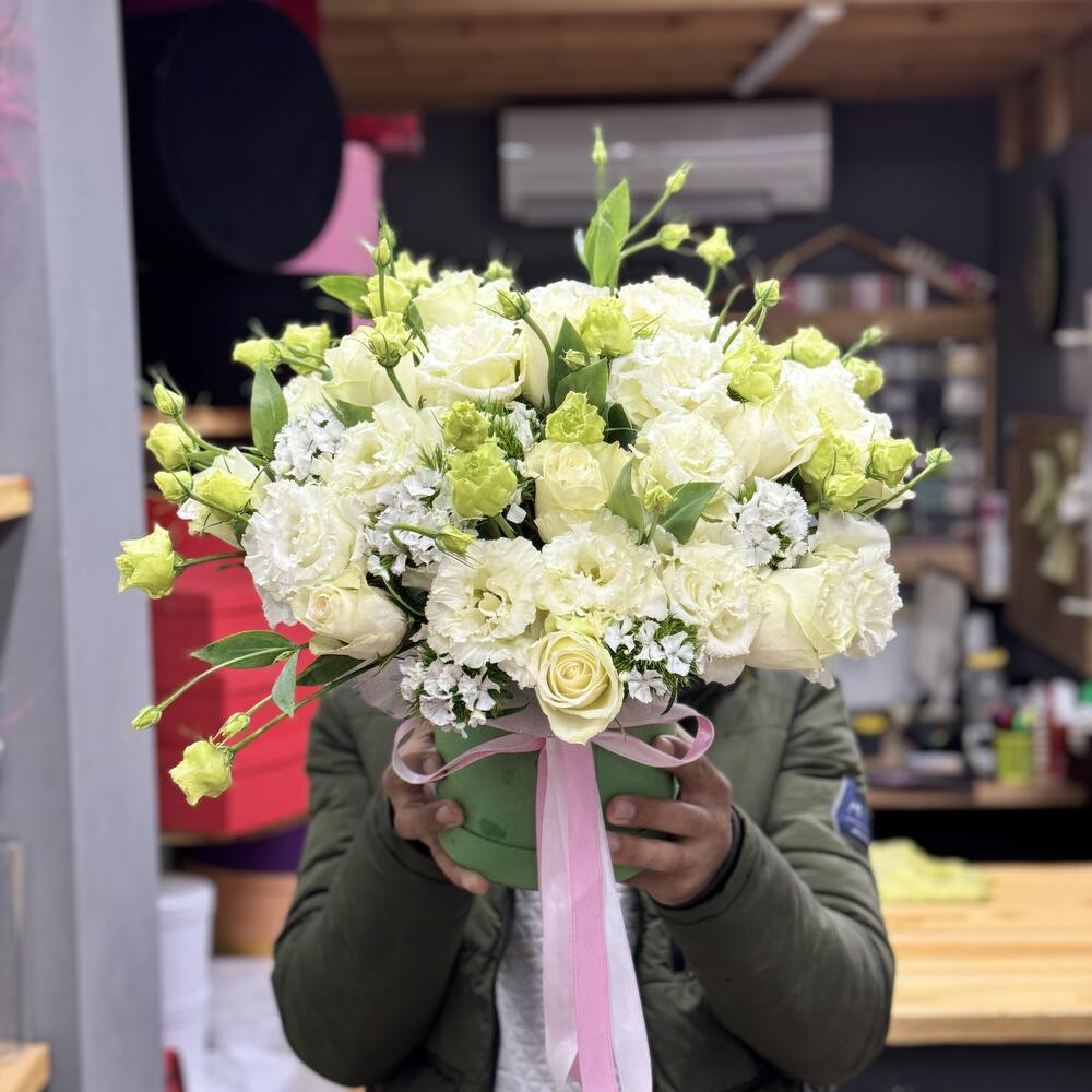white eustoma - 25 pcs white roses - 25 pcs